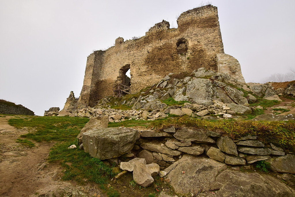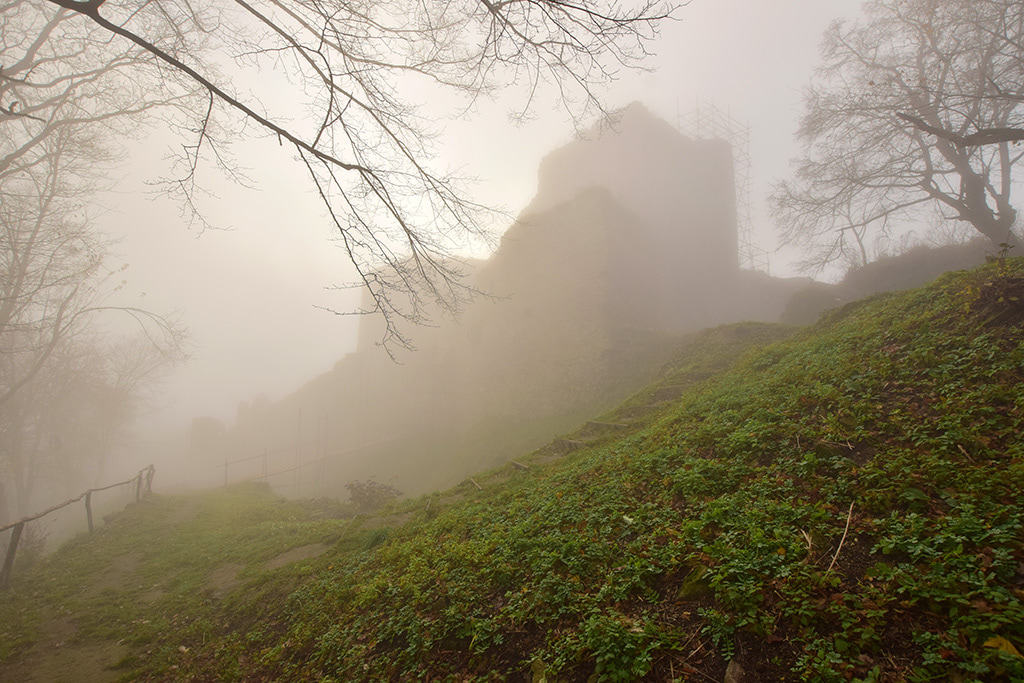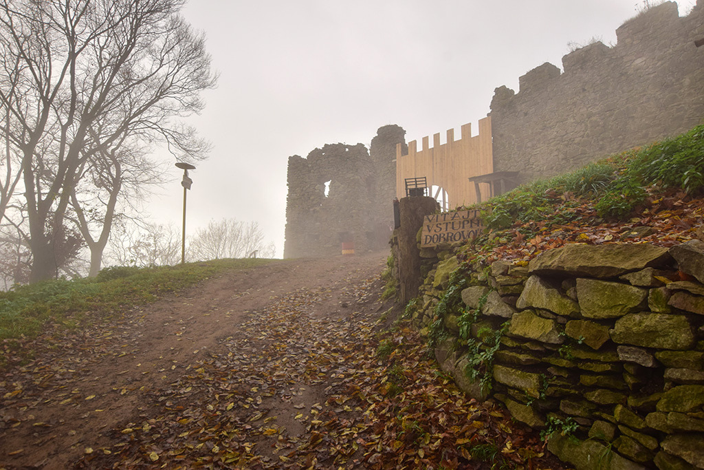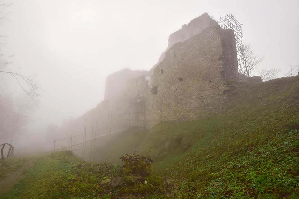 Trochę dziwne zdjęcia mi wyszły, wchodziłem na zamek nie widząc góry zamkowej, wg. GPS-u, taka była mgła. Później na górze raz było słońce, raz znowu mgła. Ruiny piękne, malownicze, w trakcie jakiegoś remontu (faktycznie coś tam murowali o 9-ej rano) jak byłem. Góra zamkowa jak to zwykle na Słowacji stroma i wysoka (wchodziłem zielonym szlakiem)