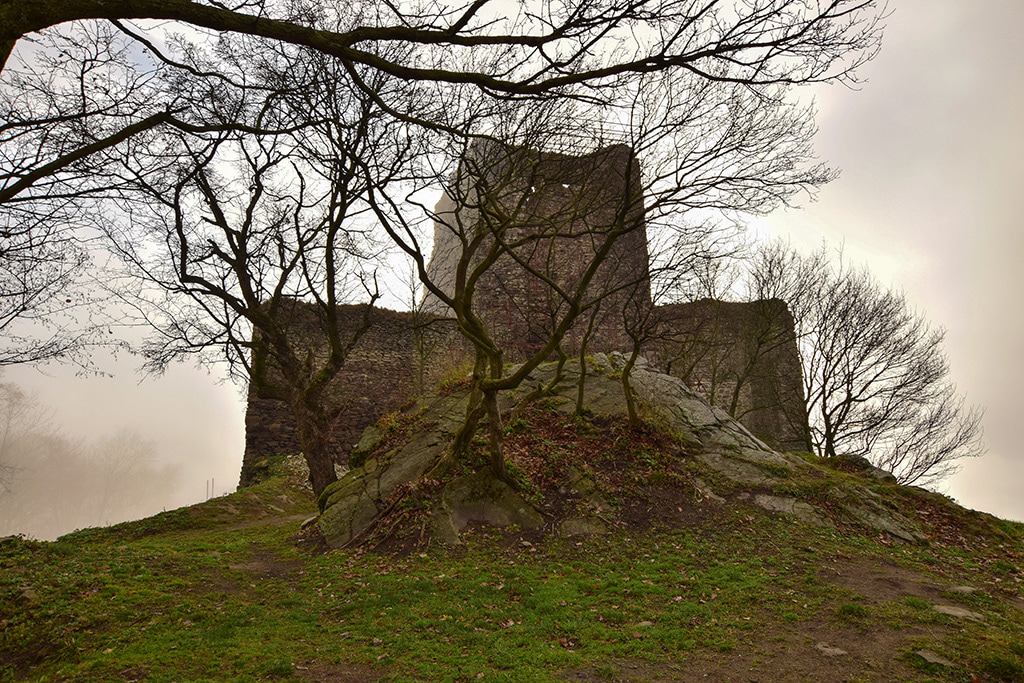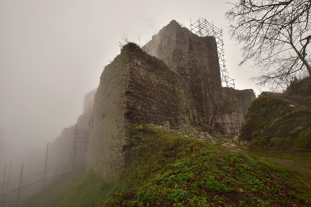 Miałem w planach zwiedzić ten zamek w 2010 roku ale wtedy był wstęp wzbroniony, cała okolica zablokowana, wieś ewakuowana, nawet nie było jak podjechać, policja wszędzie rozlokowała patrole i nikogo nie wpuszczali, z góry poszło jakieś potężne osuwisko i jedyne zdjęcie zrobiłem z daleka.