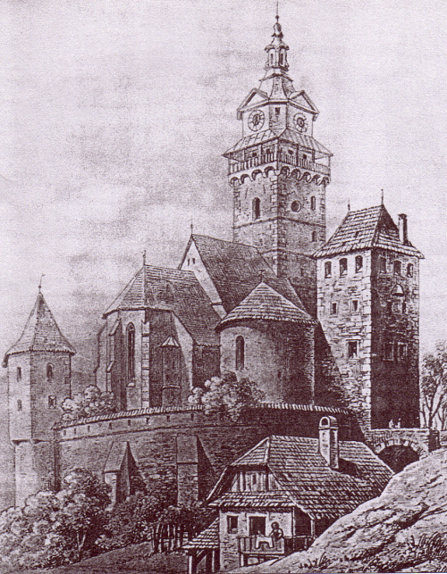 Tzw zamek kościelny - Historycznym jądrem miasta został tzw. "gród miejski" (słow. mestský hrad), powstały w otoczeniu pierwotnego kościoła z kostnicą i cmentarzem. Mieściła się tu m.in. siedziba królewskiego zarządcy komory górniczej i menniczej (słow. komorský gróf). W XIV i XV w. powstał tu kompleks obronny otoczony podwójnym murem z basztami, którego centrum stał się wzniesiony w połowie XV w. kościół pw. św. Katarzyny.