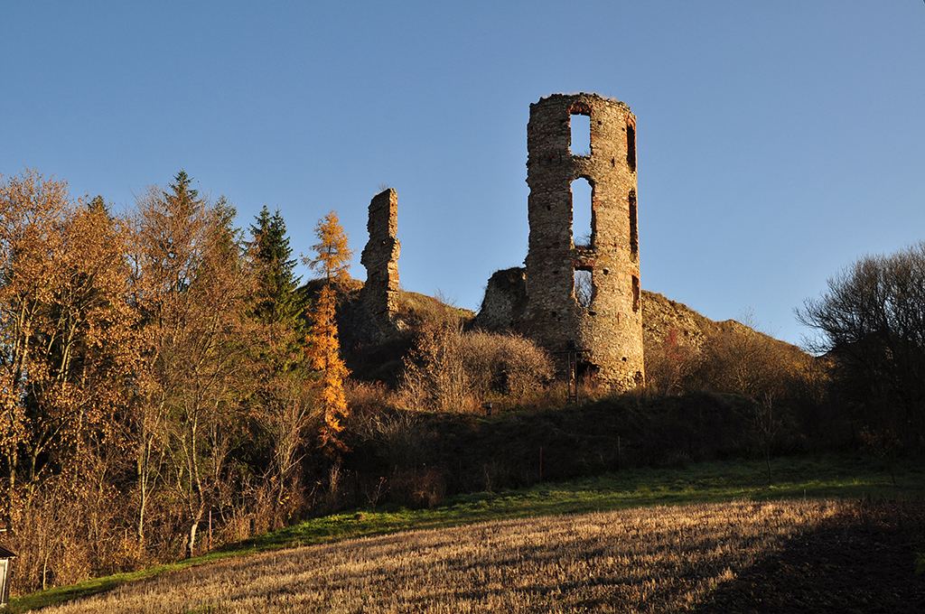a są - niewielkie 3 piwnice z czego jedna praktycznie cała zasypana, podjezdzasz pod sam zamek tą drogą i ścieżką wzdłuż muru się idzie od prawej strony, prawie że dokładnie na tej samej wysokości co flaga wbita