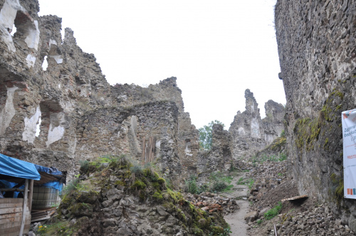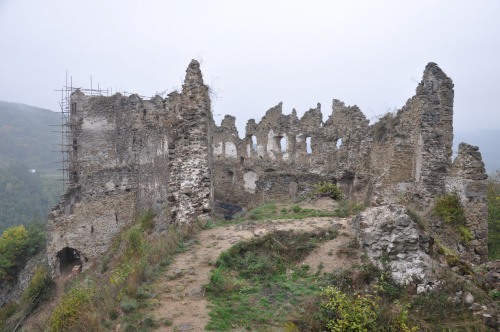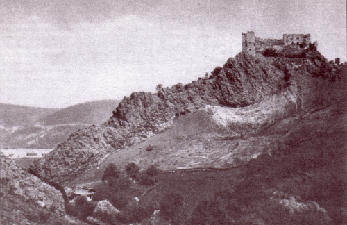 Zamek wzniesiony został na północnym skraju Gór Szczawnickich, na stromej skale wznoszącej się nad tokiem Hronu. Dominował nad skrzyżowaniem ważnych dróg handlowych, z których jedna wiodła z Kremnicy do Turca, a druga doliną Hronu z równin naddunajskich do Zwolenia. Po raz pierwszy wspominany był w 1253 r. Znajdował się wówczas w rękach braci Vancha, z których Stefan był arcybiskupem ostrzyhomskim. Obiekt składał się z tzw. zamku wewnętrznego, wzniesionego na planie mocno wydłużonego owalu i niżej położonego podgrodzia. Wejścia do niego broniły dwie okrągłe baszty.