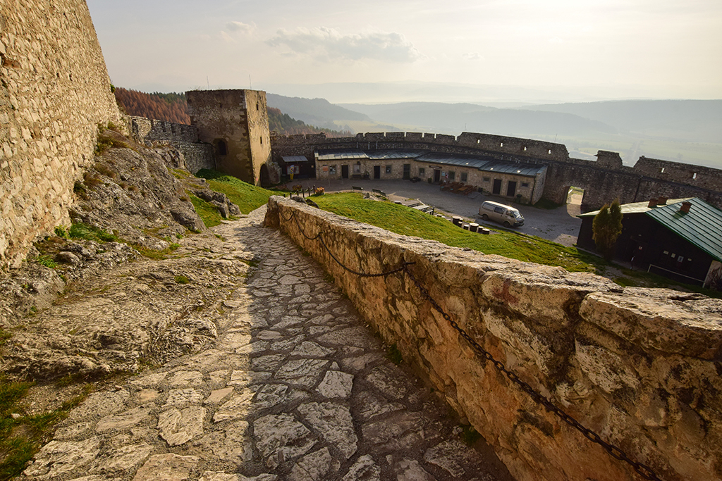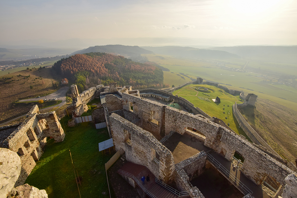 Na wysokości 634 m. n.p.m., na skale wapiennej przewyższającej okoliczny teren o 200 m., króluje nad Kotliną Spiską jeden z najcenniejszych zabytków Spiszu, narodowa pamiątka kulturalna Zamek Spiski. Jest on przykładem nie tylko rozwoju naszej architektury od XII do XVIII wieku, ale swoją powierzchnią przewyższającą 4 hektary (dokładnie 41 426 m2) jest uważany za jeden z największych kompleksów zamkowych w Europie Środkowej. Bogate są także jego dzieje. Skała, na której się rozpościera, była zasiedlona już w młodszej i późniejszej epoce kamiennej. Jednak pradawne zasiedlenie nastąpiło na przełomie naszej ery, kiedy tu powstało potężne i ogromne umocnione grodzisko ludu tzw. kultury puchowskiej. Jego obwałowania odkryli archeologowie podczas niedawnych badań archeologicznych. Znaleźli tu także ślady mieszkań chłopów i rzemieślników oraz obszerny obiekt kultu. Na podstawie wielkości, sposobu fortyfikacji i struktury organizacyjnych można założyć, że już w tym okresie było tu centrum administracyjne środkowego Spiszu. Wały, w terenie jeszcze zauważalne, otaczały cały zamek i przechodziły przez jego największy dziedziniec. Po zaniku tego grodziska powstało na sąsiednim kopcu, na Dreveniku, kolejne silne grodzisko. Dopiero potem zaczyna się budowa obecnego Zamku Spiskiego. Dzieje Zamku Spiskiego i jego rozwój architektoniczny w istotnej mierze skorygowały i uzupełniły dokładne badania naukowe archeologiczne i architektoniczne, które były tu przeprowadzane przez dziesięć lat. Chyba najbardziej znanym odkryciem było znalezienie i określenie wieku najstarszej części architektonicznej zamku, okrągłej wieży mieszkalnej (która zanikła w pierwszej połowie XIII wieku), zbudowanej w XI - XII wieku. Około roku 1230 zostaje zbudowana obecna okrągła wieża, romański pałac i inne części górnego zamku. Kiedy zamki, pomiędzy którymi i Zamek Spiski, znakomicie się spisały podczas najazdu tatarskiego, Bela IV dał środki na budowę zamków a na Zamku Spiskim darował spiskiemu prepozytowi miejsce, na którym mógł zbudować wieżę i pałac. Tak powstał tzw. prepozytowy pałac, niedawno odkryty jako pierwsza przybudówka do pierwotnego zamku. Już w tym czasie, zwłaszcza zaś w drugiej połowie XIII wieku, miał miejsce w okolicy zamku niejeden bój. Zamek stał się ośrodkiem królewskiej żupy. Często w nim zamieszkiwali znani dostojnicy. W roku 1275 zajął go komes Roland, który się zbuntował przeciwko panującemu. Potem należał do królowej Elżbiety Kumańskej, matki Władysława IV. O zamek trwały walki też w pierwszej połowie XIV wieku. W roku 1312 chciał go zdobyć Matus Cak Trenciansky, ale zamek został obroniony. Krótko potem został przebudowany w stylu gotyckim i rozszerzony. W roku 1443 zdobył go Jan Jiskra z Brandysa, walczący o prawa do korony Władysława Pogrobowca. Najpierw na zboczu pod zamkiem postawił małą umocnioną fortecę, potem zlecił wybudować fortyfikacje wielkiego dziedzińca. W taki sposób zyskiwał powoli zamek obecny wygląd i rozmiary. Istotnym punktem zwrotnym w historii zamku był rok 1464, w którym panujący podarował ten do tej pory królewski zamek szlachcicom Imrichovi i Stefanowi Zapolyom. Jest interesujące, że mimo tego że Zapolyowie byli właścicielami ponad 70 zamków, uważali Zamek Spiski za swój podstawowy zamek i na nim byli osiedleni. W znaczący sposób go rozbudowali i zmodernizowali. Postawili nową kaplicę, podwyższyli i wzmocnili wieżę, w stylu gotyckim przebudowali romański pałac, przy czym zatrudniali tych samych kamieniarzy, którzy im budowali kaplicę nagrobną w Spiskiej Kapitule. Na zamku urodził się też ostatni król węgierski przed Habsburgami Jan Zapolya. Był on ostatnim właścicielem zamku z tego rodu i dlatego, gdy przegrał walkę o tron węgierski, zamek został w marcu 1528 roku skonfiskowany przez Habsburgów. Ale już w roku 1531 podarowali go Aleksemu Turzonowi. Turzonowie przystosowali zamek do swoich potrzeb i nadali wielu jego budynkom renesansowy charakter. Gdy w roku 1636 wymarli w linii męskiej, zyskali zamek Csakyowie, którzy byli jego właścicielami aż do roku 1945. Co prawda, mieszkali w nim jedynie do końca XVII wieku, ponieważ już od początku XVIII wieku Csakyowie budowali wygodne kasztele w Hodkowcach, a później także w Bijaczowcach, Kluknawie i w innych miejscach i tam się osiedlali. Do budowy tych kaszteli zużyli wiele elementów budowlanych z zamku. Na zamku pozostała jedynie jednostka wojskowa, która jednak po pożarze w roku 1780 go opuściła. Dopiero w ostatnich latach po dokładnych badaniach naukowych dokonuje się napraw, konserwacji a niektóre fragmenty zamku rekonstruuje. Dolny dziedziniec był już w roku 1983 udostępniony zwiedzającym.