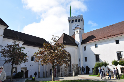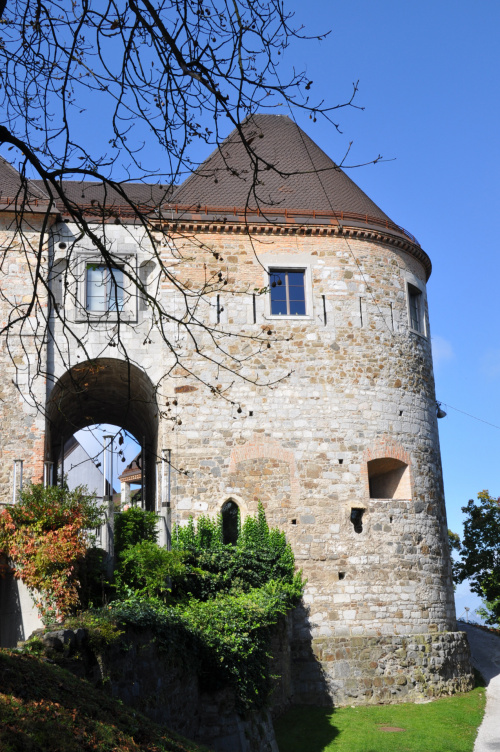 Ljubljanski zamek, wielokrotnie przebudowywany, widoczna na zdjęciach wieża pochodzi z 1848 roku. Została wzniesiona w miejscu pierwotnego obronnego stołpa.