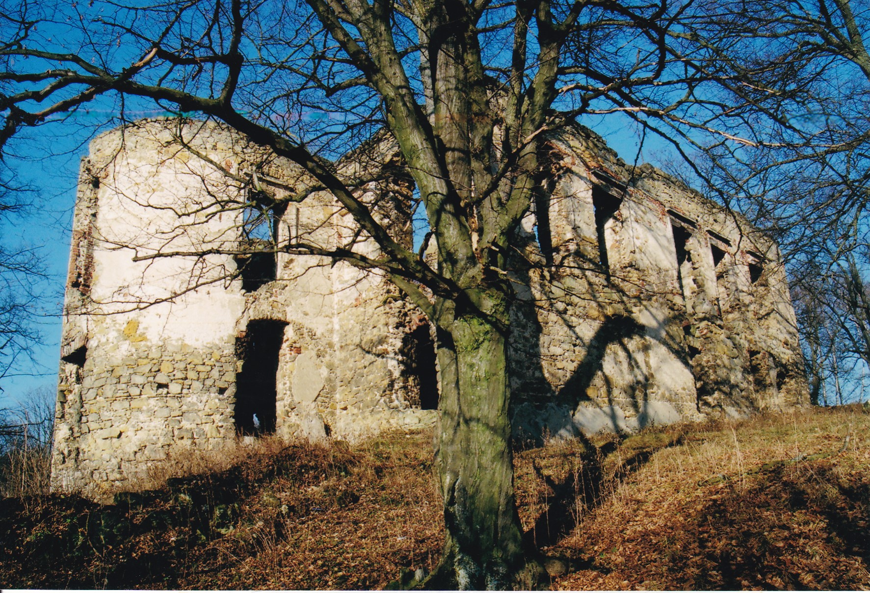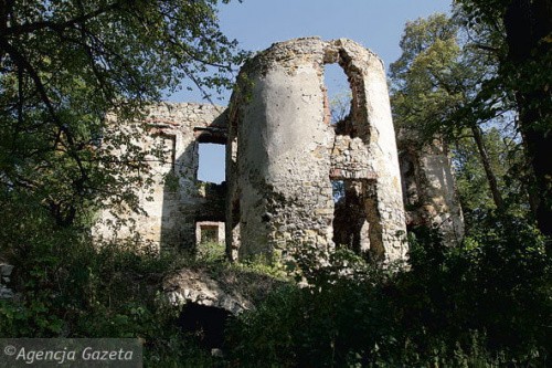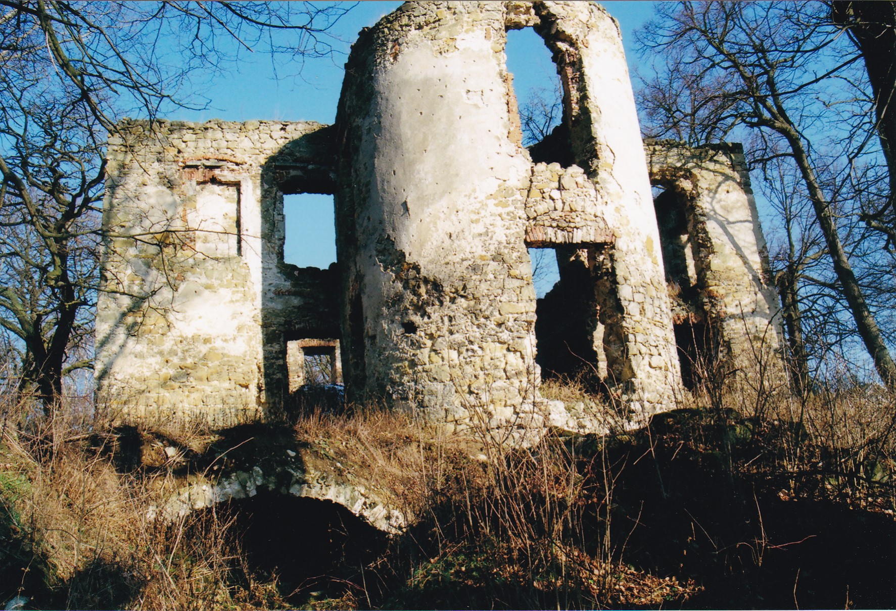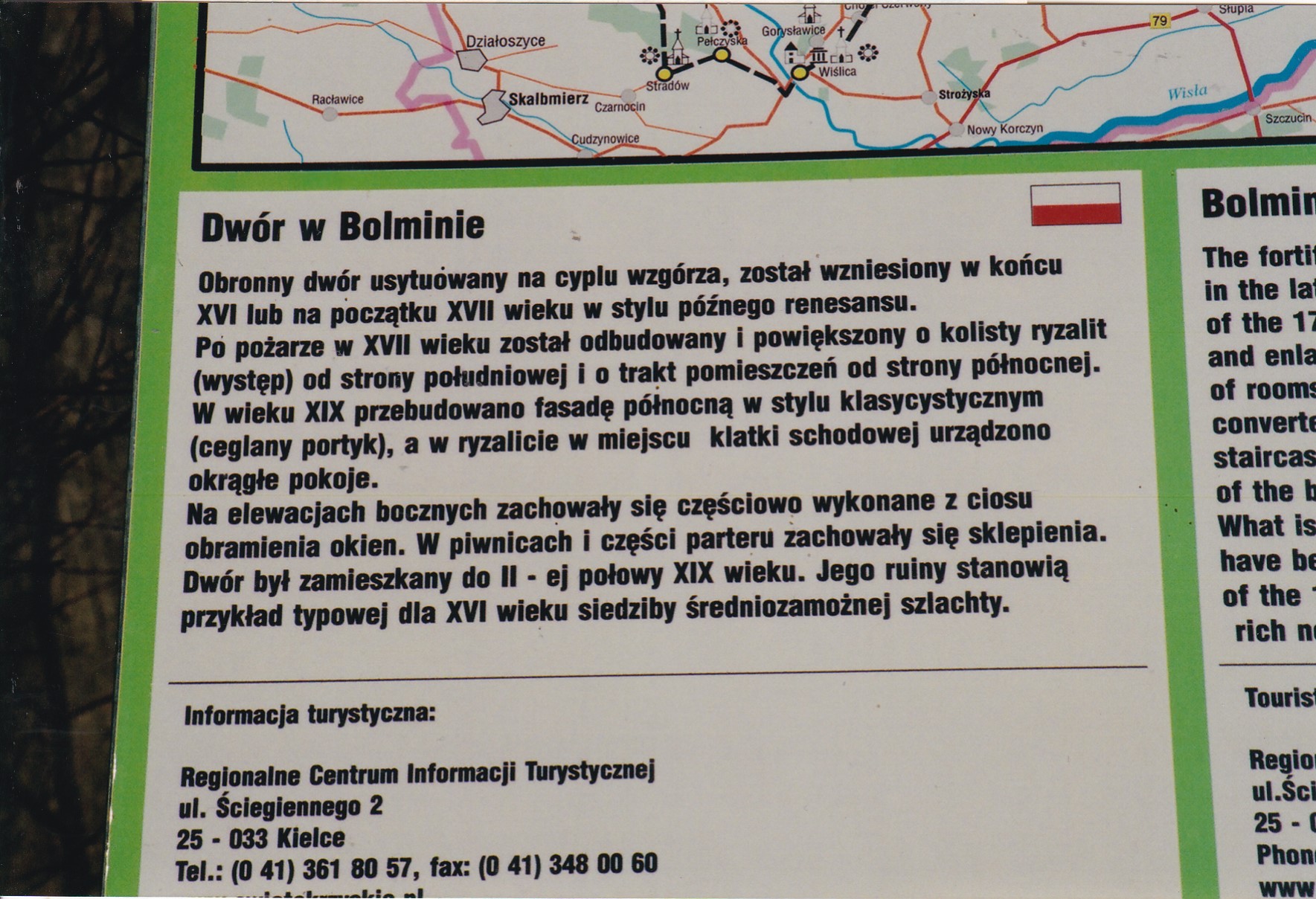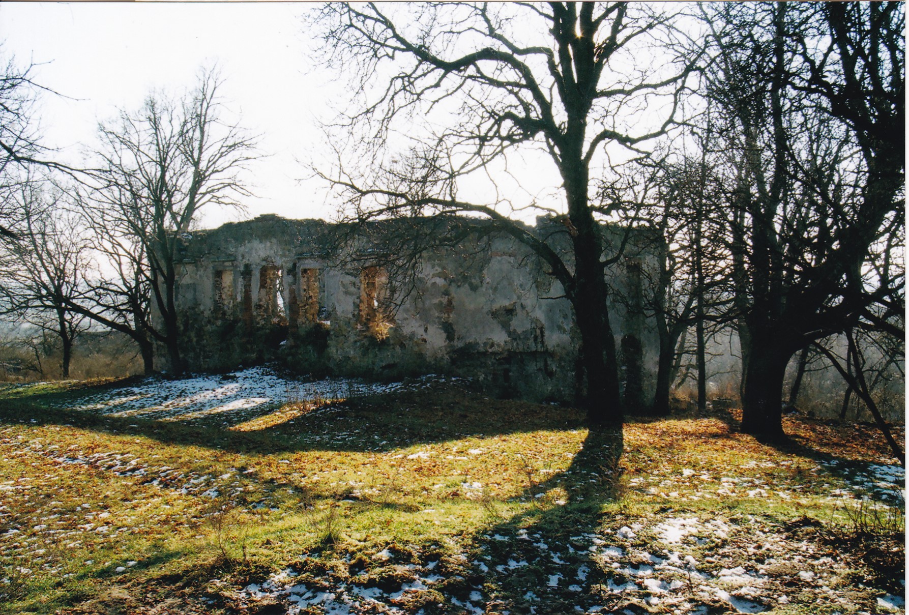 (...)kilkaset metrów od kościoła, naprzeciw nowej szkoły, znajdują się ruiny dworu. Jego historia jest ciągle pełna tajemnic. Prawdopodobnie zbudował go w końcu XVII wieku Stanisław Brzeski herbu Ciołek. Według innej wersji powstał z przebudowy średniowiecznego zamku. Był to okazały budynek - piętrowy z obszernymi sklepionymi kolebkowo piwnicami oraz kolistym ryzalitem od strony południowej. Krążyły opowieści, że piwnice połączone były podziemnym lochem z zamkiem w Chęciach, a arianie ukrywali tam skarby. Pierwotnie mógł mieć charakter obronny. Jeszcze przed wiekiem był zamieszkały, ale wskutek pożaru i ostrzału artylerii austriackiej został zniszczony. Do dziś przetrwały tylko fragmenty murów obwodowych dworu i częściowo zawalone piwnice. Większość otworów okiennych to bezkształtne dziury, pozbawione obramowań. Tylko na niektórych zachowały się resztki zdobień. Ruiny dworu otaczone są pozostałościami z dawnego parku, zarastają je drzewa, krzewy i chwasty.