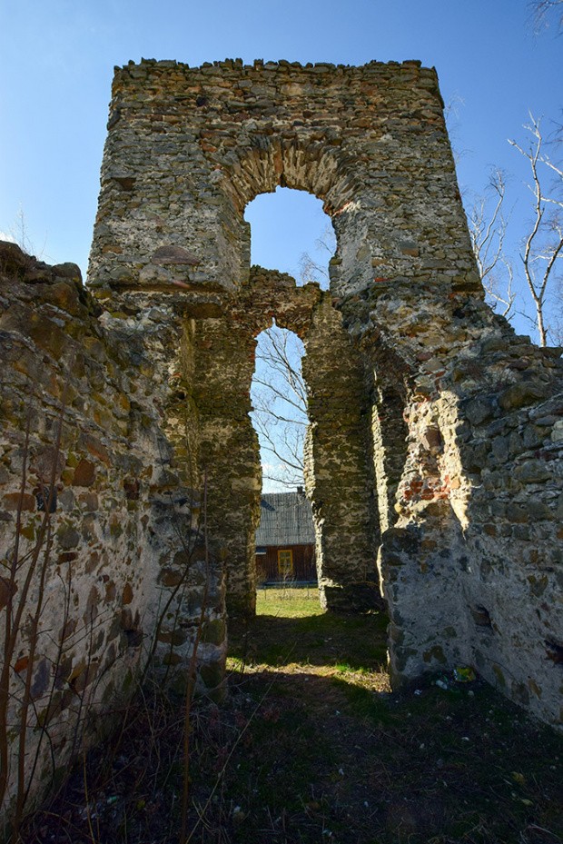 Ruiny usytuowane są we wschodniej części obecnej osady, w widłach dróg prowadzących do szosy Włoszczowa-Przedbórz. Zajmują kulminację niewielkiej wydmy, znakomicie nadającej się pod budowę zamczyska, dziś porośniętej brzózkami. Ruiny wyglądają dość tajemniczo, a dostępny poziom wiedzy na ich temat, tajemniczości tej nie pozwala rozwiać się całkowicie. Obecna nazwa wsi pojawia się w Liber Beneficiorum Łaskiego (tj. ok. roku 1520), chociaż pod poprzednią nazwą: Wola wymieniano ją już w roku 1493. Łaski pisze, że we wsi stoi dwór, działa folwark, a parafia znajduje się w położonych w sąsiedztwie Stanowiskach. Pierwszym odnotowanym właścicielem wsi był Jan Rożenkowski-Łapka, herbu Drużyna. Od połowy XVI stulecia Łapczyna Wola należała do Bobrownickich, znanych jako gorliwi wyznawcy religii kalwińskiej. Z ich fundacji powstał tu zbór, co stało się przed rokiem 1629. Fundatorem zboru był albo Stanisław Bobrownicki, albo jego syn, Zbigniew. Zbór funkcjonował tu co najmniej do roku 1730 – ministrem był wówczas Samuel Aaron, pochodzący z rodziny szkockiej. W roku 1754 obiekt był już opuszczony, ale już wcześniej pisał o nim Bogusław Elsner, że był „bardzo zrujnowany, a ponieważ o reparacji jego nie pomyślano, stał się zupełnie nieużytecznym, tak iż od dawna kaznodzieja przy nim nie mieszka i służba Boża się w nim nie odbywa". Około roku 1790 wieś przeszła w ręce Michała Czaplickiego, który niedługo potem – prawdopodobnie w roku 1800 - przeprowadził się do rozbudowanego z tej przyczyny dworu w Stanowiskach. Budynek zboru składa się z dwóch części: kwadratowej wieży oraz korpusu o planie greckiego krzyża, sprawiających wrażenie, jakby nie zbudowano je jednocześnie. Jeśli wierzyć planikowi sporządzonemu w roku 1995 przez Janusza Pietrzaka, opracowującego tzw. „białą kartę” zabytku (a brak jakichkolwiek podstaw, by mu nie ufać), wieża musiała powstać wcześniej. Na słuszność takiej hipotezy zdaje się wskazywać fakt, że zachodnie ramię korpusu „wcina” się we wschodnie partie murów wieży, jakby „wpuszczone” w nią metodą ciesielską. Drugi argument stanowi okno na trzeciej kondygnacji wschodniej elewacji wieży, które mogłoby mieć sens, gdy wieża stała samotnie (lub z inną niższą przybudówką), zaś całkowicie nieprzydatne, gdyby wykonano je razem z korpusem. Bo trudno za sensowne uznać okno skierowane z wieży ku przestrzeni strychowej świątyni. Mury trzykondygnacyjnej wieży (znacznie grubsze od pozostałych) tworzą kwadrat o boku około siedmiu metrów; „krzyż” ma 11,2 metra długości i 11,6 szerokości. Wzniesiono je z kamienia (wapień i piaskowiec) układanego w nieregularne warstwy z niewielkim dodatkiem cegły. W krypcie (niedostępnej) zachowały się sklepienia kolebkowe, zaś na parterze już ich w ogóle nie widać, choć kilkadziesiąt lat temu, gdy powstawał Katalog Zabytków Powiatu Włoszczowskiego zapisano w nim: „w narożu skrzyżowania fragment spływu sklepienia". Wejście do zboru (budowli orientowanej) wiodło od zachodu, przez wieżę. Wciąż jednak nie wiadomo, czy zbór powstał jako obiekt zupełnie nowy, czy też jako rozbudowa starszego, tajemniczego obiektu. (źr: http://www.kobidz.pl)