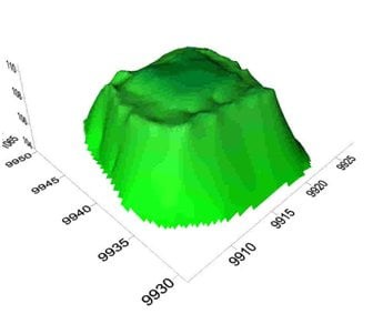 Ryc. 5 Wizualizacja trójwymiarowa wyników pomiarów (nasyp gródka bez otoczenia)