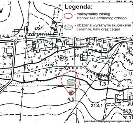 Obszar badań geoelektrycznych został przeniesiony z majdanu na na pole przy nasypie w celu ustalenia jego pierwotnego zasięgu.