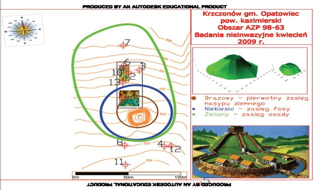 Celem badań była szczegółowa inwentaryzacja dwóch obiektów zabytkowych z okresu średniowiecza – tzw. „gródków stożkowatych” znajdujących się w miejscowościach Krzczonów, oraz Czarnocin (powiat kazimierski).