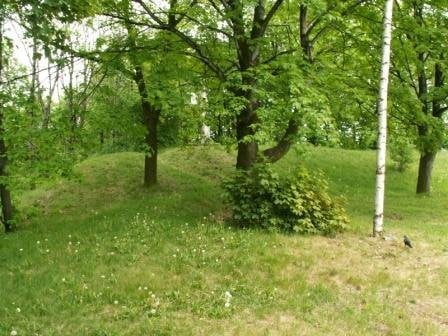 Wzgórze, na którym wznosi się kaplica św. Anny (1600r.) położone jest naprzeciw wzgórza zamkowego. W przeszłości kaplica otoczona była umocnieniami i stanowiła część systemu fortyfikacyjnego pińczowskiego zamku. Ślady fortyfikacji zachowały się od strony północnej i wschodniej. (fot. kwiecień 2009).