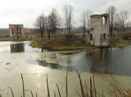 Na zamku nic się nie dzieje. Pusto i straszno, wejścia brak, a na przedzamczu stoi woda. Przybytku pilnował cieć z 3 wilczurami. Można się za to bez przeszkód przejść po wałach ziemnych (fot. listopad 2010).
