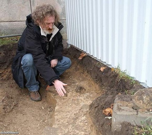 - W wykopie odsłoniliśmy kilka murów - wyjaśnia Waldemar Gliński prowadzący te prace. - Najbardziej wyraźny jest pochodzący z czasów II wojny światowej. Postawili go Niemcy zagradzając przejazd, obok znajdował się szlaban.