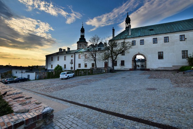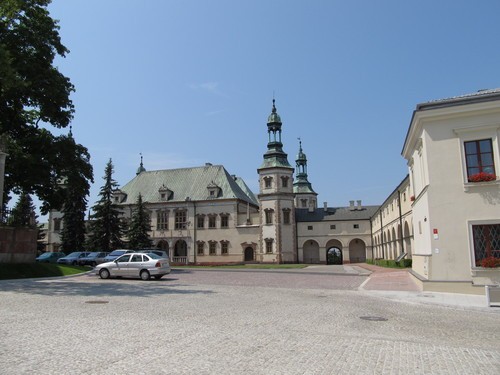 Pałac Biskupów Krakowskich, został wzniesiony w latach 1637-1641 z inicjatywy biskupa Jakuba Zadzika. Kielecki pałac często nazywany bywa zamkiem. Określenie „zamek” pojawiło się już w inwentarzu z roku 1645, dotyczyło jednak nie samej rezydencji, lecz faktu, że była ona otoczona murami. Jan Leszek Adamczyk odczytuje inwentarz w ten sposób: „W takim ujęciu zamek oznacza dosłownie zamkniętą murami zabudowaną przestrzeń", zwracając też uwagę, jak bliskie jest kieleckie założenie pałacowe włoskiemu pojęciu palazzo in fortezza.