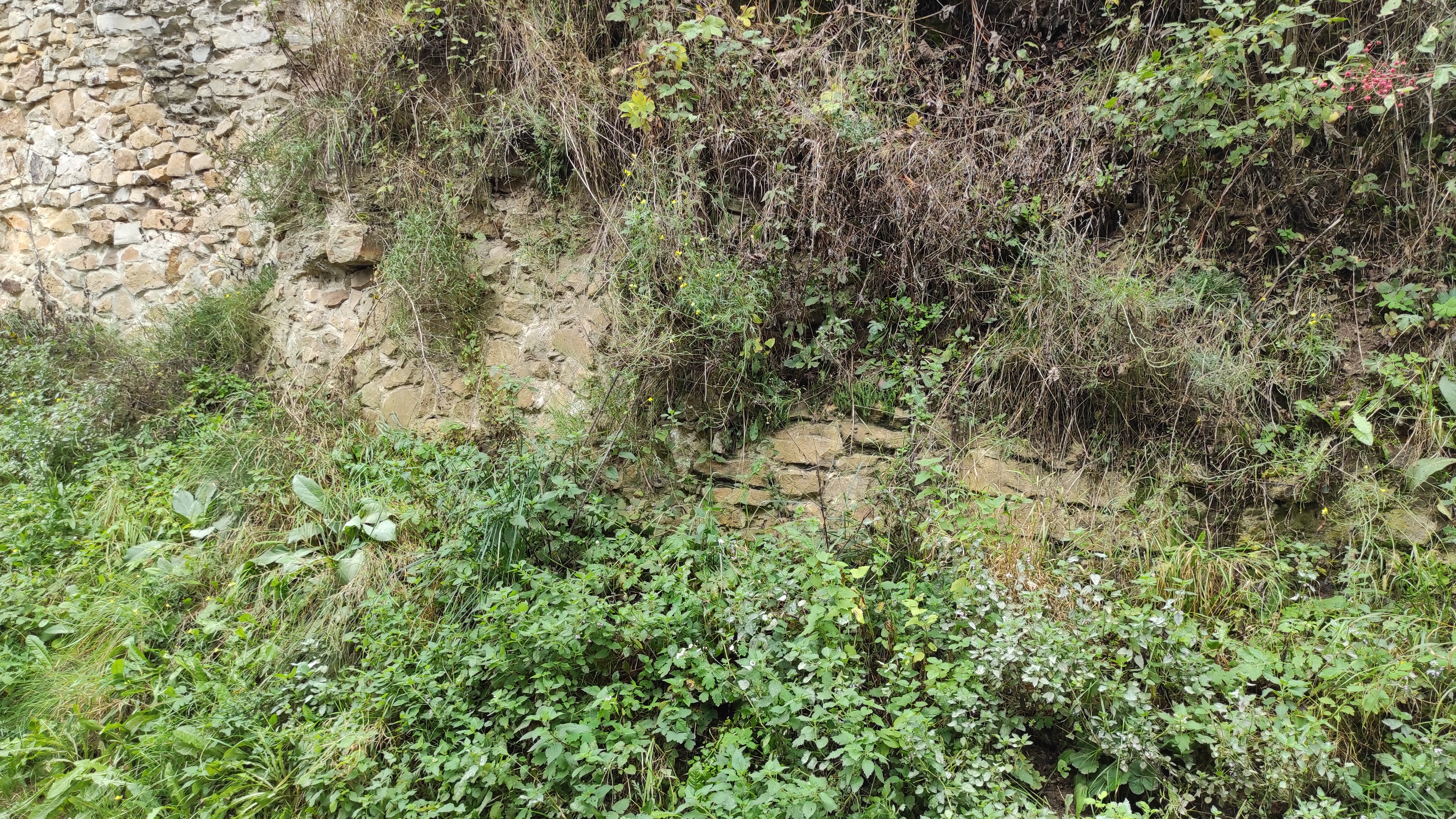Dwa ostatnie zdjęcia zostały zrobione na terenie samego zamku. Jest tam sporo murowanych reliktów, conajmniej trzy. Ale przy bujnej roślinności ich sfotografowanie byłoby niemozliwe, nawet teraz dostanie się przez krzaki do tych wgłębień z murami było dość ciężkie.