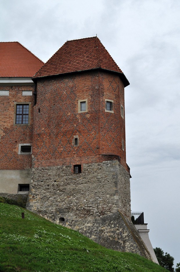 XIV-wieczny zamek został zbudowany na miejscu grodu warownego istniejącego już w X – XI wieku. W latach 1146–1166 był siedzibą syna Bolesława Krzywoustego – księcia Henryka Sandomierskiego. Nie wiadomo jednak jak wyglądała warownia przez niego wybudowana. Gotycki zamek wzniesiony przez Kazimierza Wielkiego pozostawił swój ślad w fundamentach ośmiobocznej południowej wieży narożnej, która jest najstarszą częścią zabytku. Została wzniesiona za panowania Kazimierza Jagiellończyka w XV wieku i stanowiła integralną część z tzw. Wielkim Domem – siedzibą księcia. Za czasów Zygmunta Starego, a następnie Zygmunta Augusta, zamek został rozbudowany. Z tej budowli przetrwała część łącząca dwie narożne wieże. Nad wejściem od wschodniej strony zachowała się tablica elekcyjna Zygmunta Starego, data 1520 i kartusz z orłem zygmuntowskim. Elewacja tego fragmentu wykonana była ze specjalnie wypalanej cegły zendrówki, układanej w romby. Budowniczym nadzorującym był mistrz Benedykt, zwany Sandomierskim (Sandomierzaninem), będący na usługach dworu królewskiego. Jego dziełem były, m.in. dwukondygnacyjne arkadowe krużganki wokół zamkniętego dziedzińca. Wnętrza z czasów królewskich nie zachowały się. Uległy przeróbce lub zniszczeniu. W czasie wojen ze Szwecją zamek został wysadzony w powietrze przez uciekającą załogę z komendantem Sinclerem. Zginęło wówczas około pięćdziesięciu Polaków, którzy pierwsi wtargnęli do opuszczonego przez wroga zamku. Ocalałe wówczas skrzydło jest tym, które przetrwało do dziś i tylko ono było odbudowywane za czasów Jana III Sobieskiego. Po trzecim rozbiorze Polski austriacki zaborca przeznaczył budynek w 1795 na więzienie i siedzibę sądu. Więzienie zlikwidowano dopiero w 1959. Obecnie w odrestaurowanych pomieszczeniach zabytkowej budowli ma siedzibę Muzeum Okręgowe w Sandomierzu.