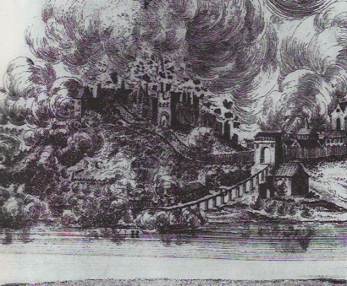 wysadzenie zamku przez Szwedów w 1655 roku na rysunku Dahlberga