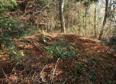 Także nieco poniżej kopca zachował się kawałek muru(?)