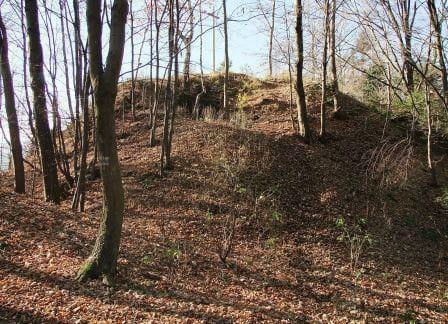 182 metry dalej - kulminacja wzgórza. Kopiec i fosa świetnie się prezentują w porze bezlistnej.