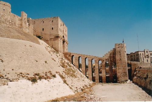 Za czasów Seleucydów powstały pierwsze budowle, które złożyły się potem na najsłynniejszy zabytek Aleppo - cytadelę Kalat Halab, położoną na skalnym wzgórzu w centrum miasta, rozbudowywaną przez kolejnych władców. W 637 Bizantyjczycy utracili miasto na rzecz Arabów. Pierwsze panowanie arabskie było dla miasta - jeszcze wtedy chrześcijańskiego - życzliwe i tolerancyjne; w VIII wieku miała miejsce kolejna fala chrześcijańskiego budownictwa sakralnego. W 944 Aleppo przeszło pod władzę lokalnej dynastii Hamdanidów, stając się ich stolicą. Ta właśnie dynastia stworzyła cytadelę Kalat Halab. Dwukrotnie, w 1098 i w 1124, oblegali miasto krzyżowcy, lecz bezskutecznie. Arabowie odzyskali miasto w 1183. Po wojnach krzyżowych nastawienie Arabów wobec chrześcijańskich mieszkańców Aleppo uległo zmianie - mścili się na nich za współpracę z krzyżowcami. Wtedy (1124) odebrano chrześcijanom i zamieniono na meczet katedrę świętej Barbary. W 1158 powstał Wielki Meczet (Al-Dżami Al-Kabir), fundacji sułtana Nur ad-Dina. W latach 1260-1317 panowali w Aleppo Mongołowie, którzy zburzyli cytadelę, następnie znów Arabowie.