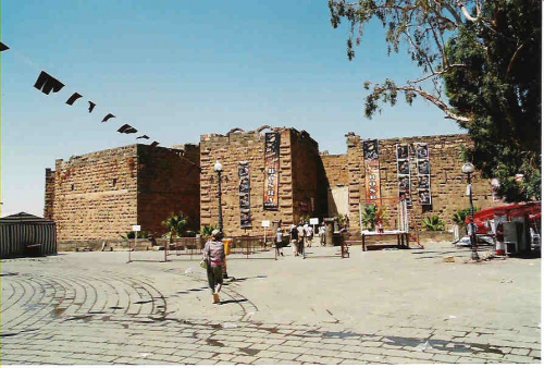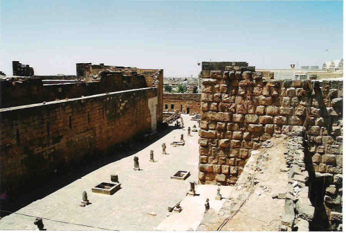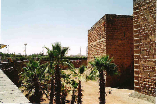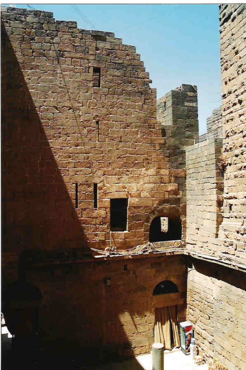 Zamek wzniesiony w miejscu rzymskich budowli, m.in amfiteatru który w całości był otoczony średniowiecznymi murami. Amfiteatr na twierdzę zamieniono w latach 997-1075 najpierw przez Fatymidów następnie Seldżuków. Dwukrotnie, bezskutecznie był atakowany przez Krzyżowców, najpierw w 1147 roku, następnie w 1151. W latach 1202 - 1251 fortyfikacje umocnili jeszcze Ayyubidowie. Przebudowany jeszcze raz w 1261 Mameluckiego Sułtana Baybarsa.