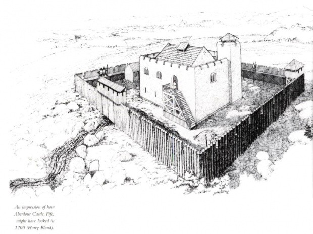 Ruiny zamku Aberdour Castle zbudowanego w 1260 roku. Początkowo zamek był skromnym budynkiem z widokiem na pobliski potok. Przez następnych 400 lat od powstania, zamek był sukcesywnie rozbudowywany zgodnie z ówczesnymi prądami w architekturze. W XV wieku budynek został przekształcony w wieżę rycerską, zaś w XVI wieku doszło do dwóch kolejnych modernizacji. Ostatnich zmian dokonano ok. 1635 roku w stylu renesansowym. Od strony południowej zamku rozpościerał się ogród tarasowy, zaś od wschodu – ogród otoczony murem.