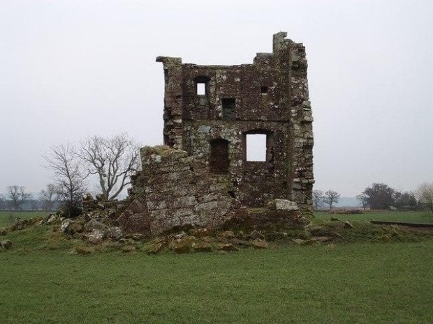 Ruiny XVI wiecznej wieży mieszkalno obronnej zwanej Lochar Tower w hrabstwie Dumfries and Galloway.