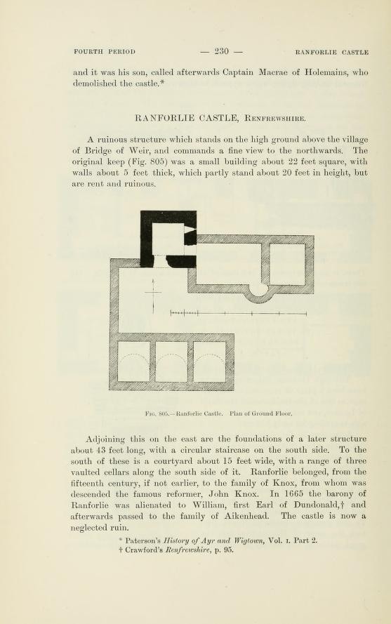 We wsi znajdują się ruiny XV-wiecznego zamku Ranfurly lub Ranforlie Castle. Niestety nie dysponuje zdjęciami bądź rycinami