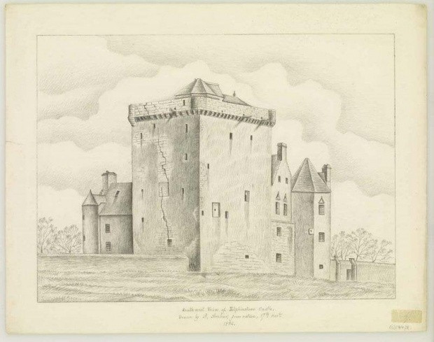 Ruiny XV-wiecznej wiezy mieszkalno-obronnej Elphinstone Tower.