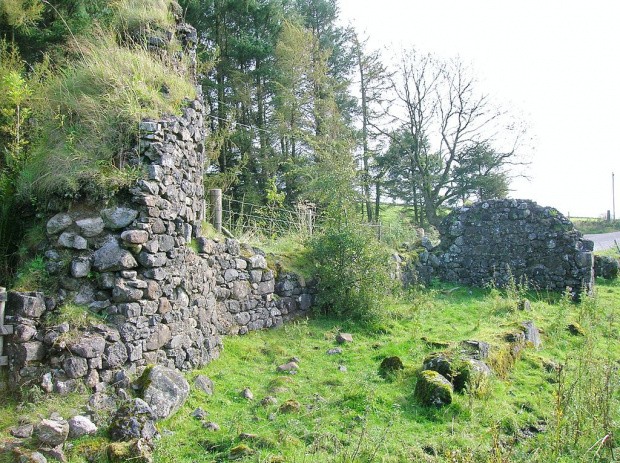 Ruiny wieży mieszkalno obronnej Auchinbathie Tower (lub Barcraigs Tower) z XV wieku