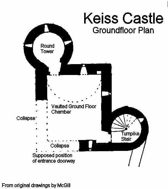 Ruiny zamku Keiss Castle. Został wybudowany na przełomie XV/XVI wieku. Po koniec XVIII wieku w pobliżu zrujnowanej już wież, wzniesiony pałac zwany New Keiss Castle.