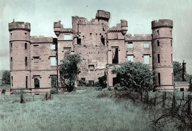 Eglinton Castle - pierwotna wieża mieszkalno-obronna z XVI wieku przebudowana całkowicie w XIX wieku na rezydencję