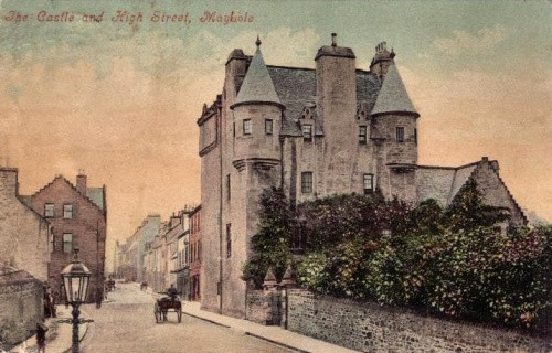 Wieża mieszkalno-obronna z 1560 roku Maybole Castle na archiwalnej pocztówce i obecnie