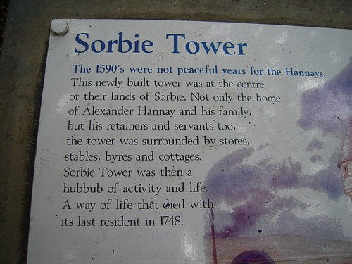 Kolejna XVI wieczna wieża obronna wzniesiona przez klan Hannay. Nazywana obecnie Sorbie Tower.