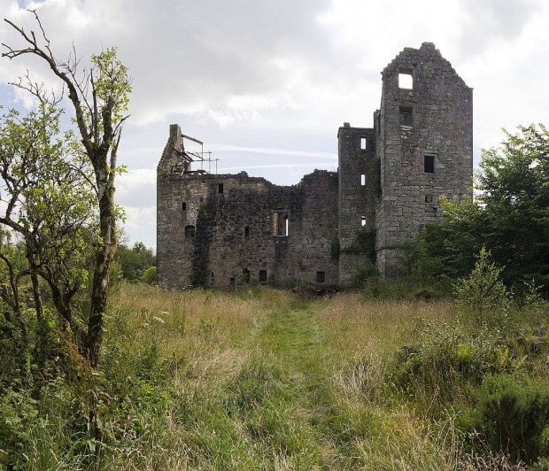 ruiny wieży mieszkalno obronnej Torwood Castle wybudowanej w 1566 roku przez Alexandra Forrestera