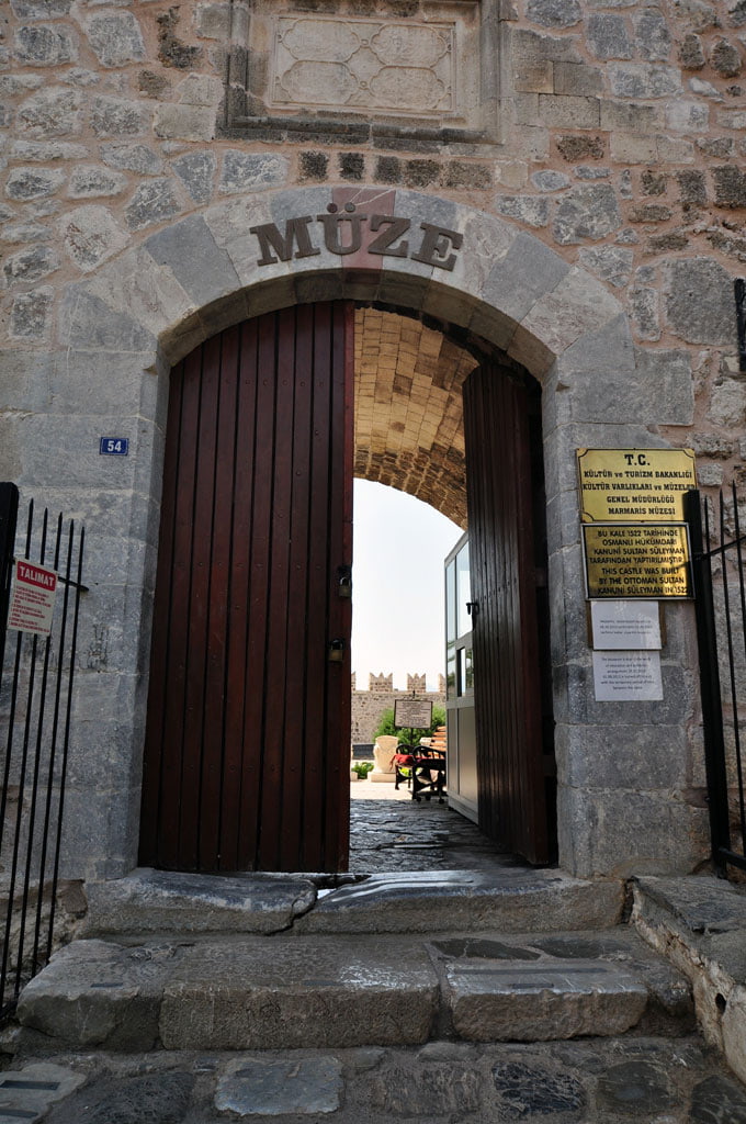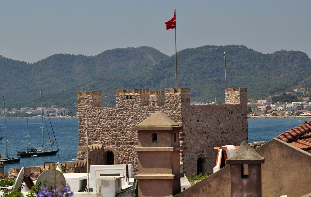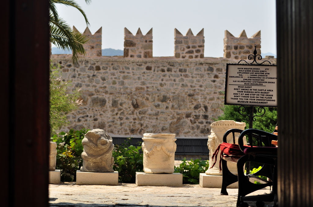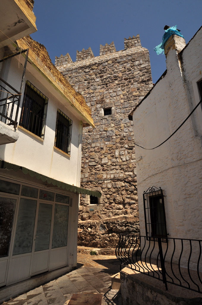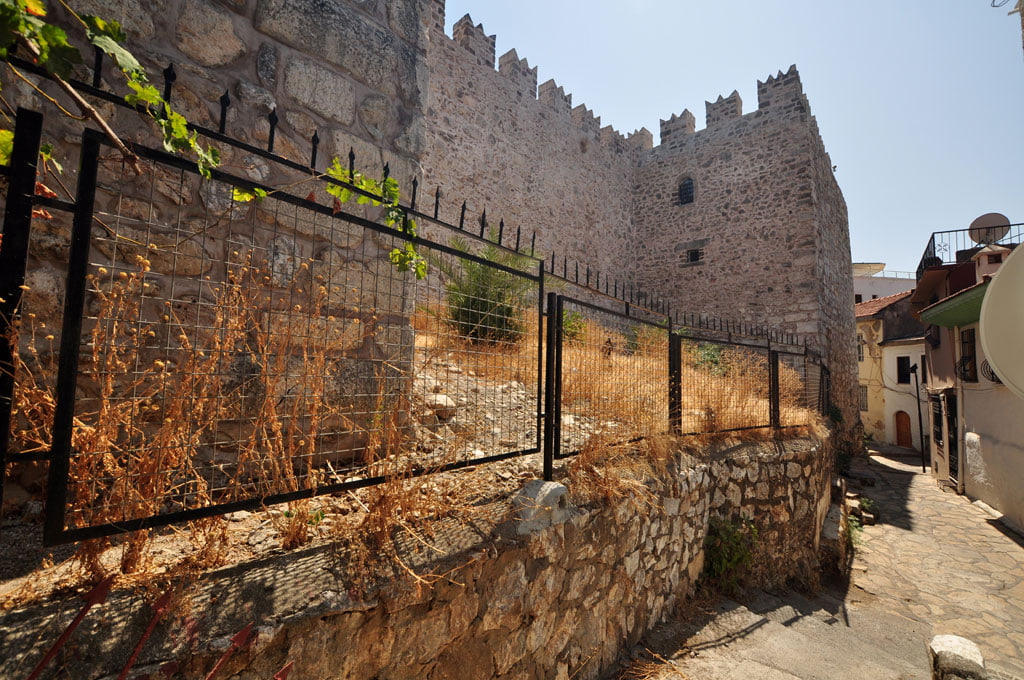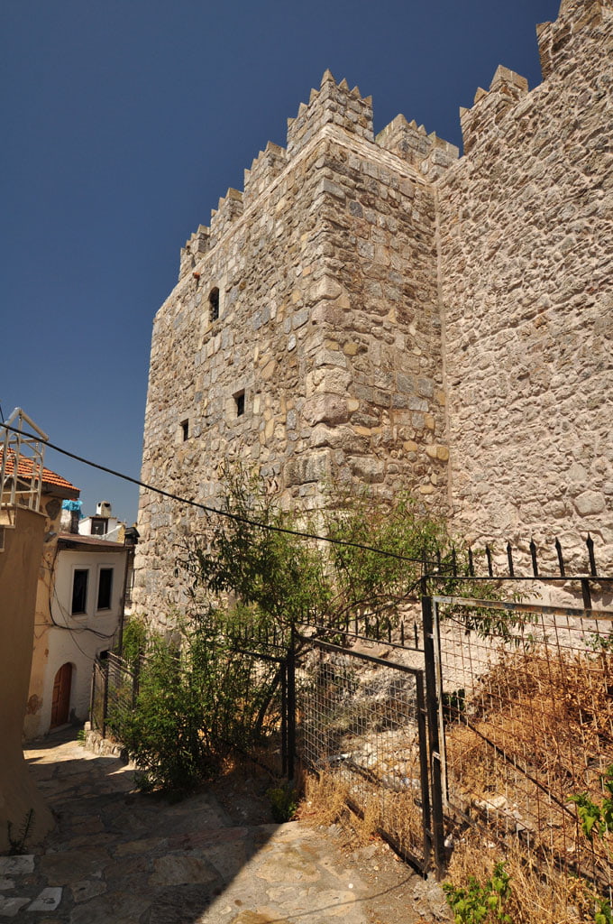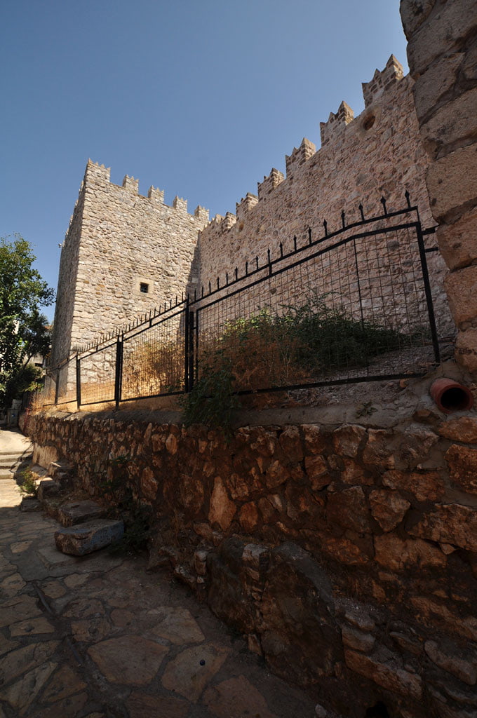 Zamek trudny do sfotografowania. Otoczony ciasno zabudową mieszkalną. Podobno został zbudowany w XI w., a następnie przebudowany przez Sulejmana Wspaniałego podczas walk o Rodos w XVI w.