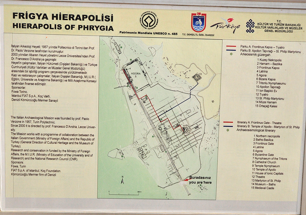 I tak to czasem jest - sfotografowałem tablicę, stojącą przy wejściu do Pammukale, a nie doczytałem, że był tam "medieval castle", nr 15 na planie. A byłem tam dwa razy. I to jest cała moja wiedza na temat tego zamku.