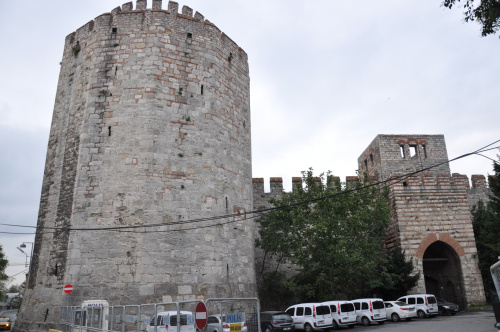 Jeszcze przed wzniesieniem murów miejskich cesarz Teodozjusz I wzniósł w miejscu dzisiejszej twierdzy łuk triumfalny. Został on w latach 413–439 włączony do budowanych murów miejskich i stał się miejscem świętowania zwycięstw. Wieża przy bramie została obłożona marmurem, ozdobiono ją posągami z brązu i złota, a wrota złotem i odtąd nazywano ją "Złotą Bramą". Była ona przeznaczona wyłącznie dla cesarza. U schyłku Bizancjum brama została zamurowana, by ułatwić obronę miasta.