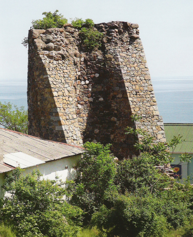 W Ałuszcie znajdują się pozostałości genueńskiej twierdzy Auston. Forteca powstała w miejscu wcześniejszych umocnień bizantyńskich, ale do dziś zachowały się tylko pozostałości murów z czasów genueńskich (1380– 1390). Twierdzę zniszczyli Turcy w 1475 r. Obecnie można jedynie zobaczyć efektownie wyglądającą z przodu, lecz z tyłu na wpół zawaloną kamienną basztę, zwaną Aszaga-Kule (Baszta Dolna), a także długi na kilkadziesiąt metrów odcinek muru, szczelnie obudowany ogródkami i domkami. Baszta została uszkodzona podczas trzęsienia ziemi w nocy z 11 na 12 września 1927 r.