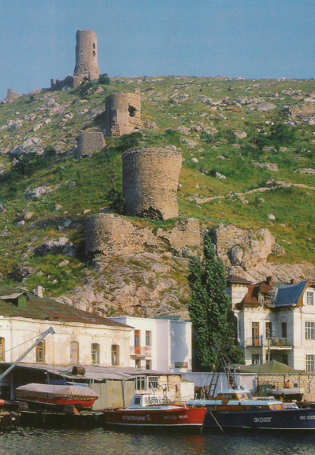 W miejscowości, nad miastem, znajdują się ruiny genueńskiej twierdzy Czembalo wzniesionej w latach 1357-1433 przez genueńczyków. Tworzyła ona zachodni skraj genueńskiego pasa twierdz na Południowym Wybrzeżu Krymu, zbudowanych w celu ochrony Genueńczyków, którym zagrażało gockie księstwo Teodoro na północnym wschodzie. W początkach XV w. władca Teodoro – książę Aleksy, postanowił zdobyć twierdzę i jesienią 1433 r. wywołał powstanie w Cembalo, a następnie wkroczył do fortecy na czele swych wojsk. Część Genueńczyków wymordowano, reszta została wygnana. Na wieść o utracie bezcennej pod względem strategicznym twierdzy natychmiast wysłano z Genui 20 okrętów dowodzonych przez Carla Lomellina. Dopłynęły one na Krym w czerwcu 1434 roku. Siły księstwa Teodoro były jednak na to przygotowane i zażarcie broniły twierdzy. Wtedy z okrętów Lomellina, które wcześniej sforsowały łańcuch przegradzający zatokę Bałakława, ostrzelano fortecę ogniem z dział. To pierwsze w dziejach Krymu użycie broni palnej zupełnie zaskoczyło obrońców i Genueńczycy odnieśli druzgoczące zwycięstwo.