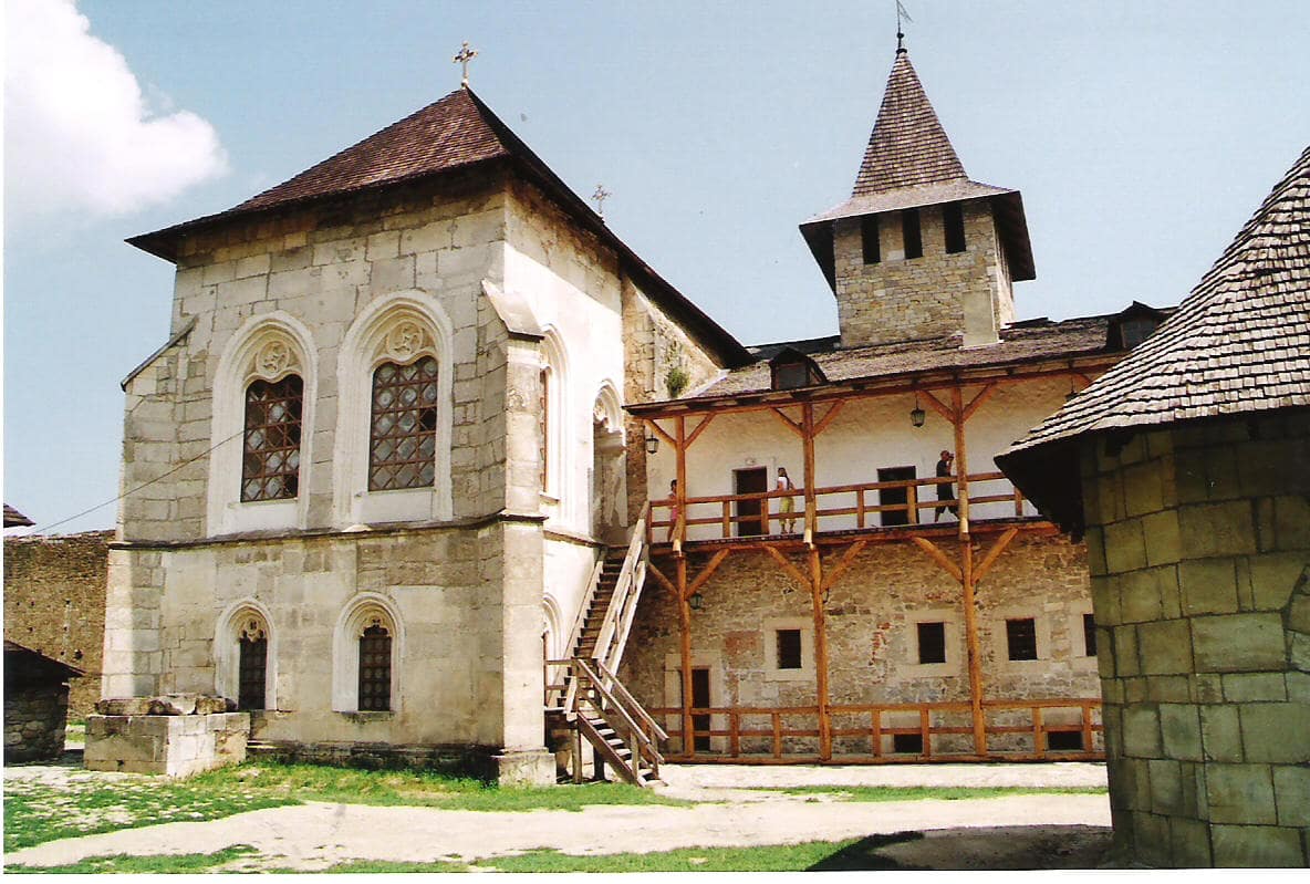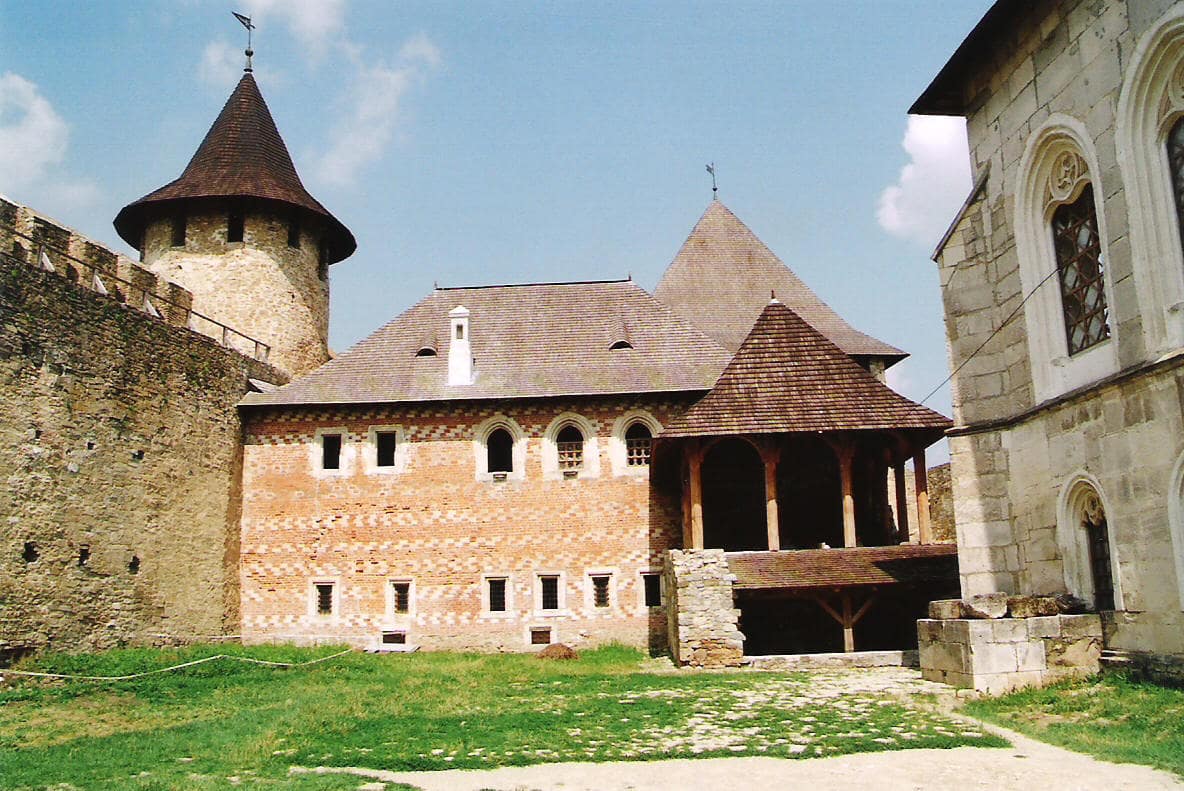 Był to ważny punkt strategiczny, usytuowany na przecięciu się szlaków handlowych, strzegący przeprawy i drogi schodzącej jarem od południowego-zachodu. Niegdyś ziemie te wchodziły w skład Rusi Kijowskiej, a następnie Księstwa Halickiego. Istniał wówczas gród z umocnieniami drewnianymi. Po połowie XIII w. powstała pierwsza twierdza murowana, położona na końcu skalnego cypla. Pozostały z niej fragmenty murów z wapienia, odkryte na dziedzińcu zamku i w grubości jego wschodniej ściany. Na południe od grodu, oddzielonego fosą, rozciągało się podgrodzie. Zamek w Chocimiu został umocniony, w drugiej połowie XIV w., ale najważniejsza przebudowa miała miejsce w trzeciej ćwierci XV w. w czasach hospodara Stefana III Wielkiego (1457-1504), ukończono ją około 1480 r. Zamek zbudowany został od nowa, zachowując tylko niewielki fragment starej ściany. Założony na nieregularnym, wydłużonym planie, dostosowanym do rzeźby terenu, zajął cały obszar staroruskiego grodu i podgrodzia. Poziom dziedzińców został podniesiony o 8-10 m, potężne mury miały 8 m grubości i były wzmocnione sześcioma basztami i wieżami. Dolne partie twierdzy tworzyły monolit posadowiony w znacznej części na litej skale. Mury i baszty zwieńczone były krenelażami, wzdłuż murów ciągnęły się ganki strzeleckie. W północnej części zamku, położonej na krańcu cypla, znajdował się dziedziniec wewnętrzny z potężną czworoboczną wieżą ostatniej obrony, występującą poza obwód murów od północy, wyposażoną w trzy kondygnacje strzelnic oraz z dwoma budynkami pałacowymi od południa (na miejscu zasypanej fosy, dzielącej dawny gród od podgrodzia), połączonymi budynkiem bramnym. Zachował się jedynie dwukondygnacyjny pałac zachodni, przetrwały w nim częściowo gotyckie portale i okna w profilowanych obramieniach oraz kamienne ławy we wnękach okiennych. Na dziedzińcu zewnętrznym wzdłuż murów wschodnich usytuowany był budynek mieszkalny dla załogi twierdzy i przylegająca doń kaplica zamkowa, wyposażona w romańsko-gotycki portal w kruchcie od zachodu, ostrołukowe okna. W południowym odcinku murów zamkowych znajdowała się wieża bramna, flankowana basztami, okrągłą od zachodu i czworoboczną od wschodu (dziś nieistniejącą). Baszta następna na planie kolistym wtopiona była w mur zachodni przy budynku pałacowym, a ostatnia, czworoboczna stała w połowie wschodniego odcinka murów. Zamek wzniesiony z kamienia, otrzymał oblicowanie z dekoracyjnymi pasami geometrycznych wzorów, wykonanych z cegły (motywy kratki, szachownicy, trójkątów zwieńczonych krzyżykami), co wskazuje na idące z południa wpływy bizantyjskie.