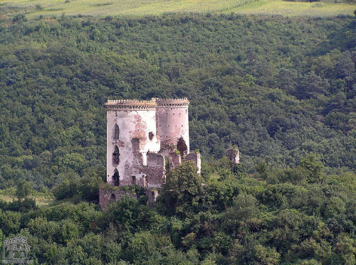 Zamek czerwonogrodzki położony jest na wzniesieniu pośrodku kotliny Dżurynu. Pierwotnie na wzgórzu zamkowym znajdował się gród o umocnieniach drewniano-ziemnych. Zamek wybudowano z miejscowego, czerwonego piaskowca. Było to Castrum Rubrum. Do XII wieku Czeronogrodem władali książęta Ruscy, których w 1240 roku najechali Tatarzy. W kolejnych latach Czerwonogród należał do książąt Koriatowiczów, którzy około 1313 roku otrzymali okoliczne ziemie od księcia Olgierda. Po nich w pierwszej połowie XIV wieku warownię przejęły wojska Kazimierza Wielkiego. Następnie okolicą i zamkiem władał Władysław Jagiełło, który przekazał je krakowskiemu wojewodzie - Spytkowi z Melsztyna. Później na zamku zasiadali jeszcze Swidrygiełło, a po jego bucie przeciwko Polskiej Koronie, zamek i ziemie weszły w poczet dóbr księcia Witolda. W 1434 roku naddniestrzańskie pogranicze weszło na trwałe w polskie posiadanie jako część województwa podolskiego. Pierwszym polskim starostą (z siedzibą powiatu i starostwa na wyremontowanym zamku) został kasztelan kamieniecki Teodoryk Jałowiecki, zwany również Buczackim. To jemu przypisuje się przeprowadzoną w 1448 roku lokację miejscowości na planie magdeburskim. Przez kolejne prawie trzysta pięćdziesiąt lat Czerwonogród był stolicą powiatu i największym w regionie skupiskiem polskiej szlachty zaściankowej, a tamtejsi starostowie wywodzili się z zacnych rodów Skarbków, Raczyńskich, Bielskich i Gadomskich. W okolicy Czerwonogrodu przechodziły nawały Tatarów, Wołochów, Kozaków i Turków, które były specyficznym elementem kresowej rzeczywistości. Najazd Wołochów w pierwszej połowie XVI wieku przyniósł ogromne zniszczenia. Walki z Kozakami również kończyły się katastrofą dla miasta i zamku. Okupacja turecka w latach 1672 – 1699 nie pozostawiła aż tak wielu śladów, jak w innych miastach regionu, poza jednym istotnym zdarzeniem - w jej wyniku miejscowa ludność opuściła miasto, które zupełnie podupadło. W XVIII wieku Czerwonogród faktycznie został zdegradowany się do rangi niewielkiej miejscowości, w której niszczały budowle przypominające o dawnej świetności miasta. W 1778 roku tamtejszy majątek wykupił Karol Poniński, który zmodernizował zamek, nadając mu walory nowoczesnej rezydencji. W długiej kotlinie na szczycie cypla, na którym niegdyś stała warownia ruskich książąt, zachowały się ruiny dawnych murów zamkowych i narożnych baszt. Ponoć w miejscu starej warowni w XVI wieku powstał nowy zamek, który najprawdopodobniej był dziełem Daniłowiczów. Forteca miała plan czworoboku z czterema okrągłymi, narożnymi basztami. Nie przetrwała jednak wojennych nawał w XVII wieku i popadła w ruinę. W 1820 roku zrujnowany czerwonogrodzki zamek wyremontował Karol Poniński. Przebudowa objęła jedynie dwie narożne wieże. Pozostałe wyburzono, podobnie jak trzy skrzydła zamku. Z pozostałych fragmentów utworzono front nowego pałacu z 6-kolumnową, kamienną attyką i herbem rodu. Całość postawiono na starym murze oporowym i starych podpiwniczeniach. Od frontu budowla została oparta na włoskim tarasie, z którego po specjalnych schodach można było zejść do parku, gdzie umieszczono zdobione fontanny i altanę widokową. Przebudowę pałacu zakończył syn Karola - Kalikst Poniński, który wzorował dalsze prace na neogotyckim projekcie Fryderyka Bauma. Pod koniec XIX wieku pałac był ponownie przerabiany i zdobiony przez Kazimierza Mokłowskiego. Utrzymywano go w dość dobrym stanie do 1914 roku. W trakcie I wojny światowej pałac Ponińskich uległ dewastacji. Zniszczono wówczas część otaczającego pałac parku krajobrazowego i mauzoleum rodziny Ponińskich, które zbudowano przy polskim cmentarzu na zboczu wzgórza otaczającego zamkowy cypel. W 1920 roku kompleks pałacowy ponownie ucierpiał w trakcie wojny polsko-bolszewickiej. Ze zniszczeń próbowano go podnieść w latach trzydziestych XX wieku. Obecnie pozostaje w ruinie. źr: http://www.polskieradio.pl