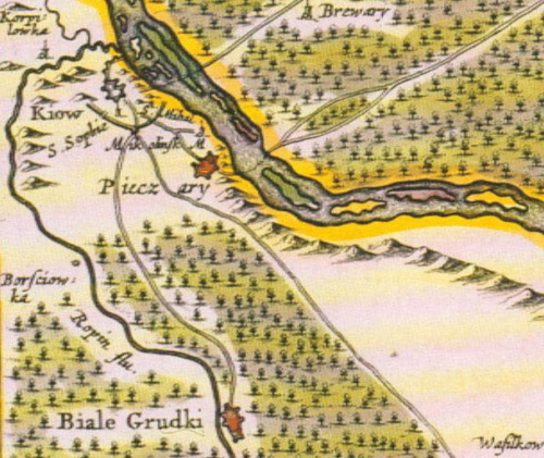 obronny książęcy dwór Kiow i okolice, znajdują się obecnie w granicach miasta Kijowa) na mapie Tractus Borysthenis Vulgo Dniepr at Niepr dicti. Jana Janssona, Amsterdam, 1663