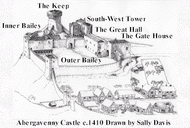 Zamek Abergavenny Castle wzniesiony w miejscu motte wybudowanego w 1075 roku przez Hamelina de Balun. ostatecznie opuszczony po pożarze w XV wieku