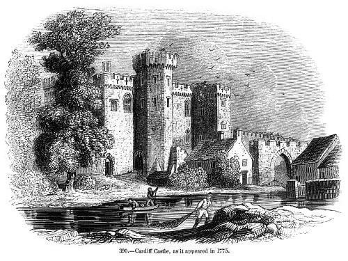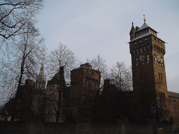 Pierwotnie romański zamek Cardiff Castle, wielokrotnie przebudowywany.