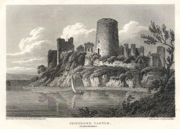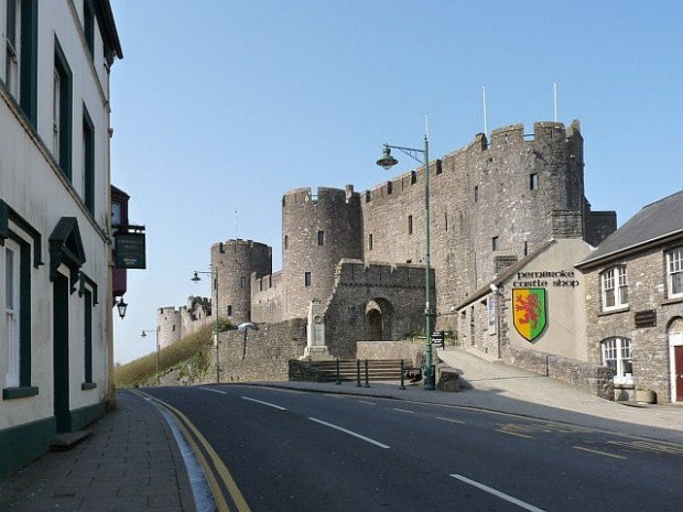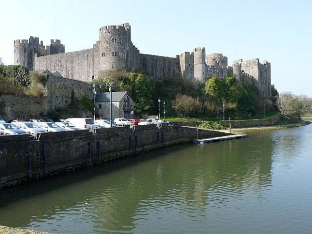 Trwała ruina zamku Pembroke Castle, którego początki sięgają 1093 roku.
