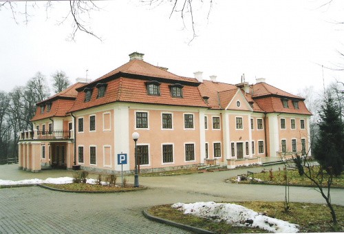 dwór oraz wnętrze kaplicy dworskiej