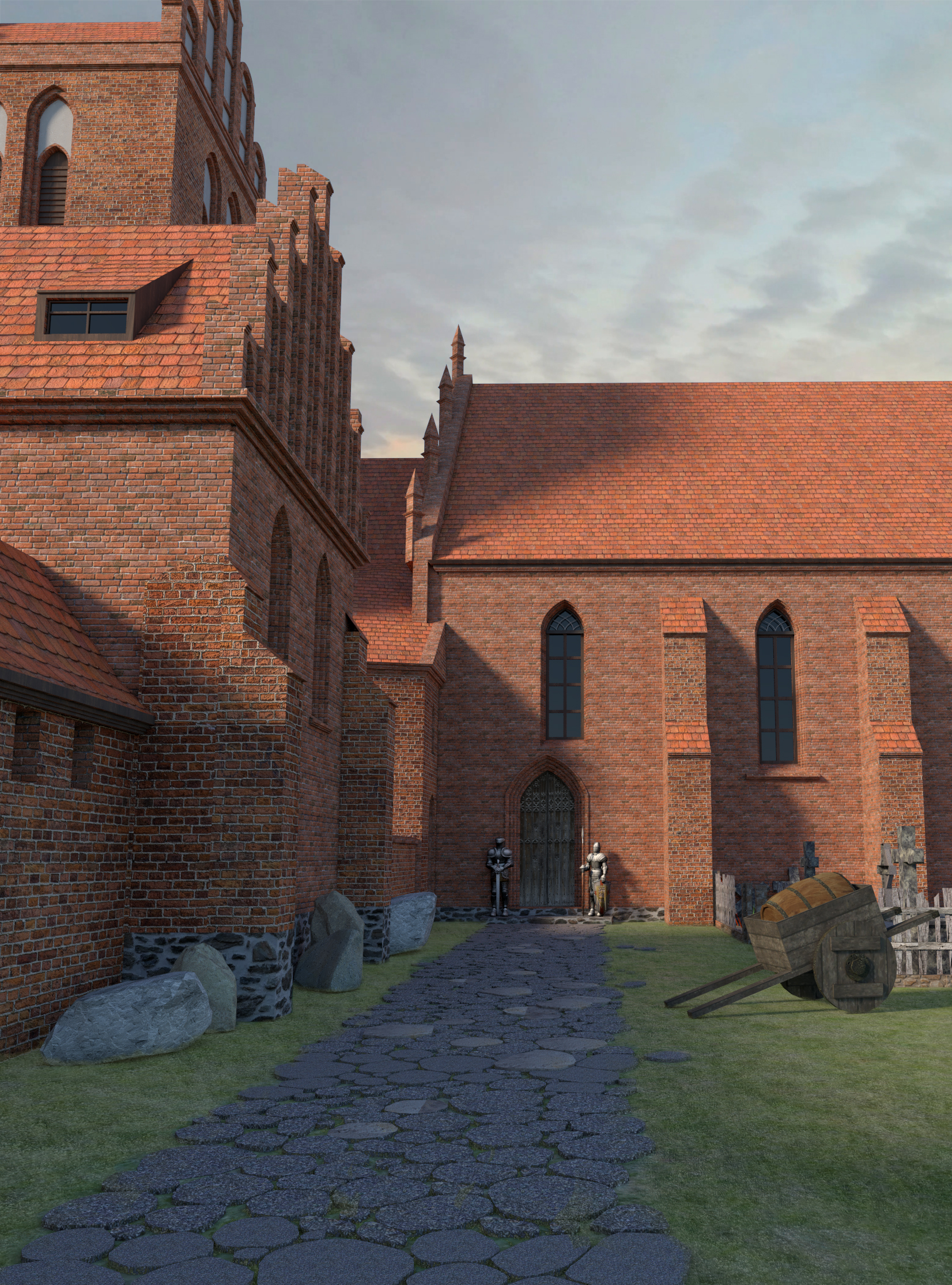 Tak według architekta Kamila Cieszyńskiego mógł wyglądać dziedziniec iławskiego kościoła w 1550 roku (autor Kamil Cieszyński)