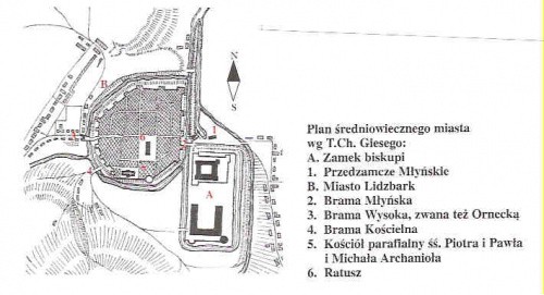 plan miasta (źr.Zamki i warownie Warmii i Mazur,str.69)