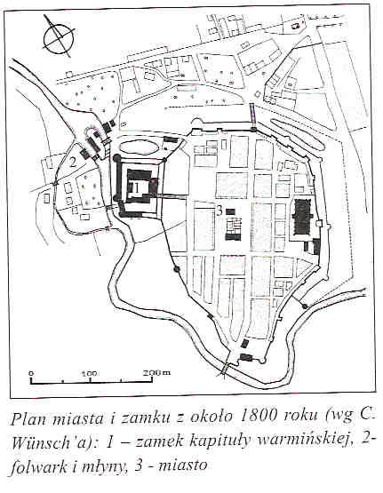 plan miasta z sąsiadującym zamkiem (źr.Zamki Krzyżackie w Polsce,M.Haftka,str.208)