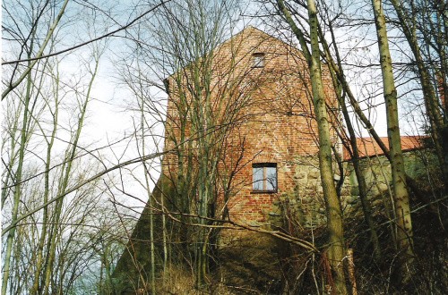 fragment murów i baszta przebudowana na plebanię