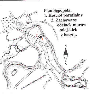 Mury miejskie w Sępopolu posiadały dwie bramy: Królewiecką, Młyńską oraz 4 baszty. W 1749 roku miasto wraz z murami strawił pożar. Do chwili obecnej zachowały się fragmenty murów oraz baszta miejska przy kościele.